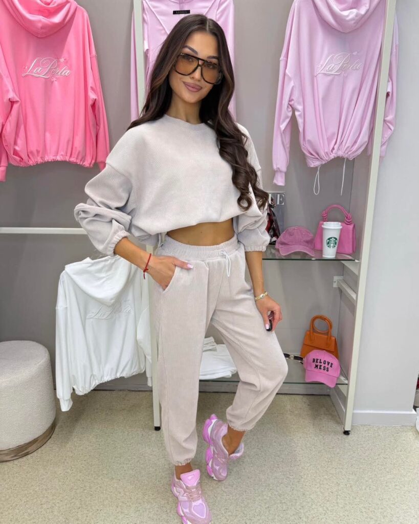 Bluza pudrowa z wyszywanym logo